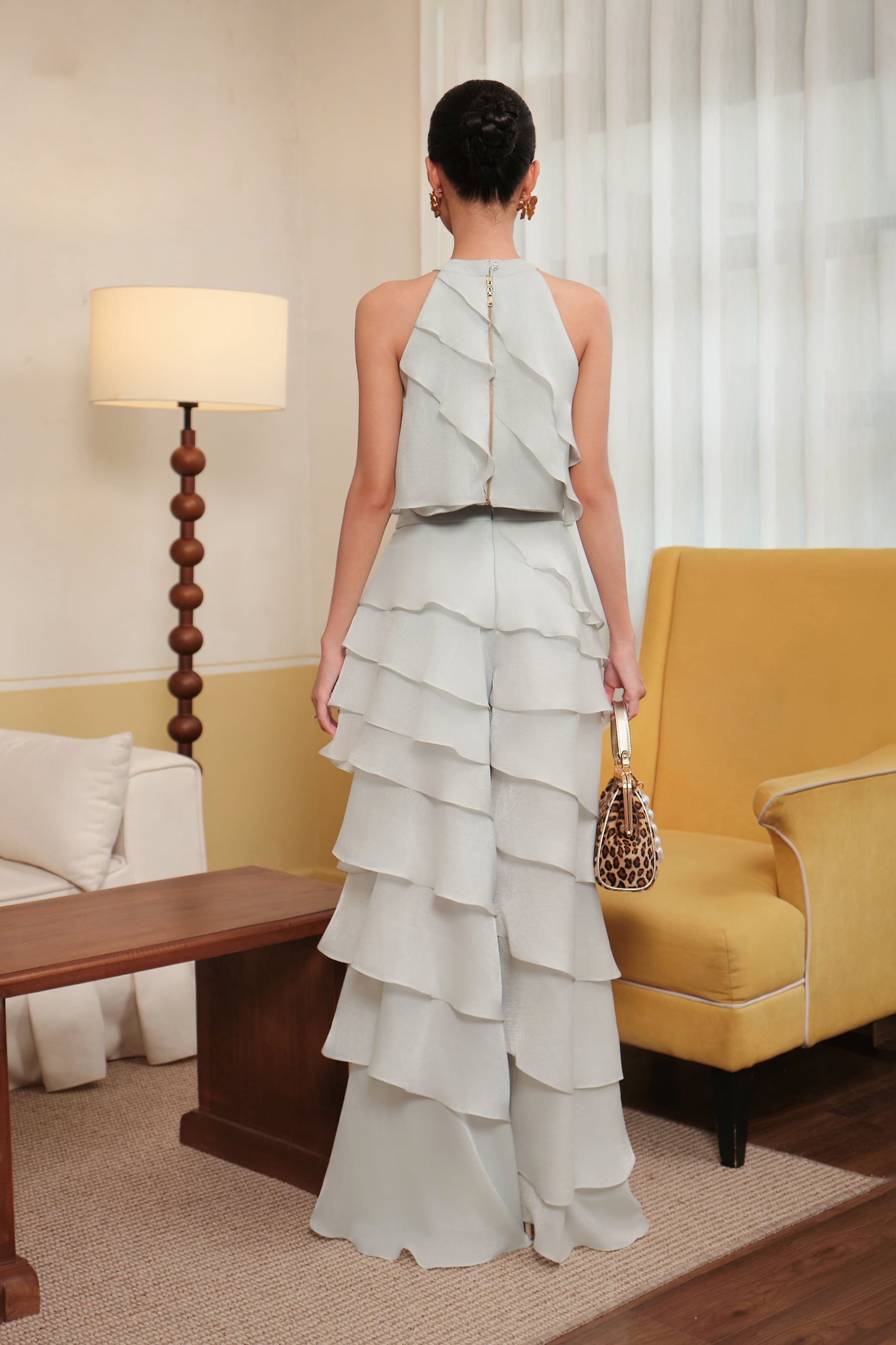 • Two-piece chiffon set (halter top & wide-leg pants)