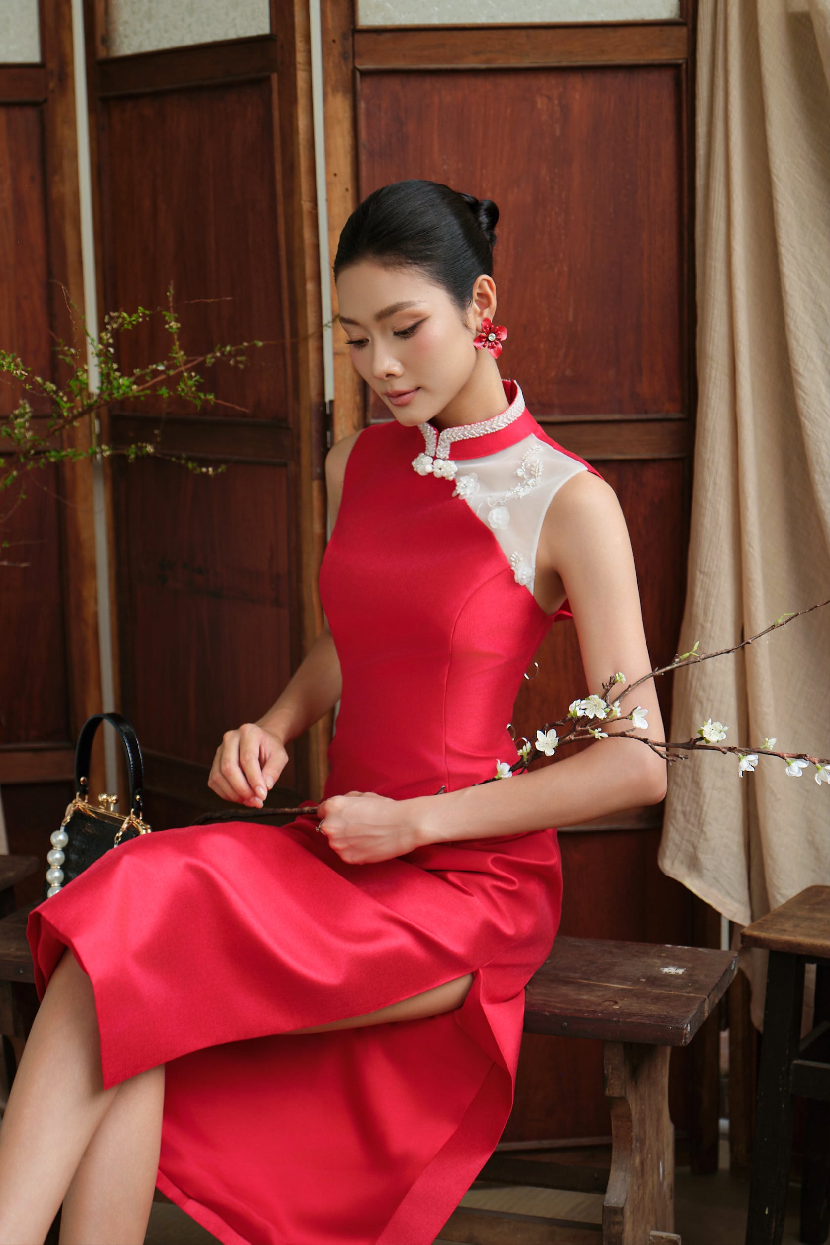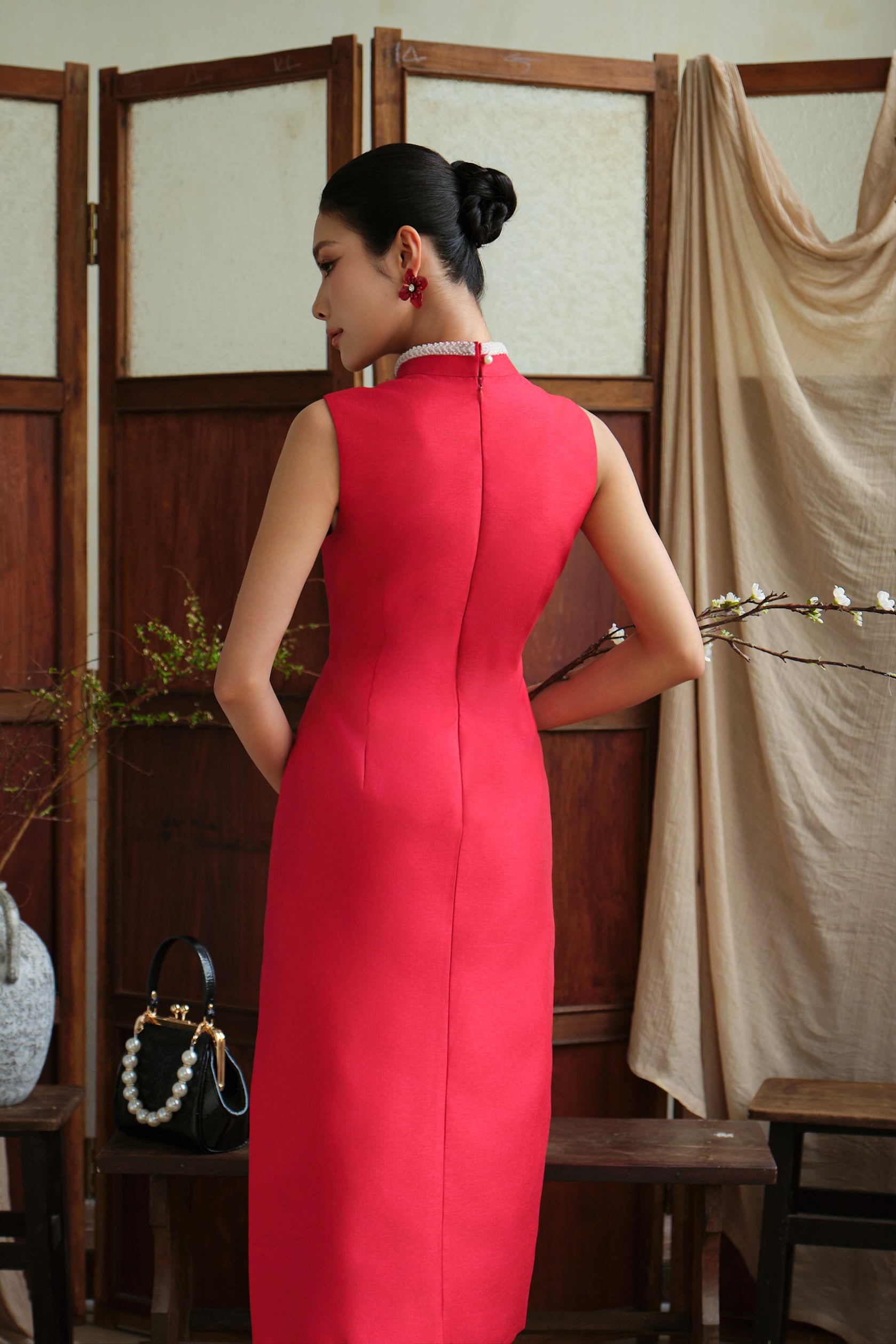 • Modern sleeveless cheongsam silhouette